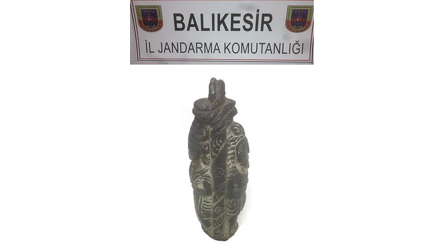 Balıkesir'in Bandırma ilçesinde bir eve düzenlenen operasyonda, 4 bin yıllık bronz heykel ele geçirildi.
