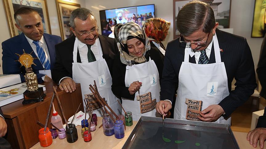Başbakan Ahmet Davutoğlu, AK Parti 5. Yerel Yönetimler Sempozyumu kapsamındaki tanıtım standında ebru çalışması yaptı.