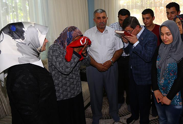 Başbakan Ahmet Davutoğlu, Şehit Jandarma Uzman Onbaşı Mustafa Özata ve İstanbul Emniyet Müdürlüğü Bomba İnceleme ve İmha Şube Müdürüyken şehit olan Beyazıt Çeken'in ailelerine taziye ziyaretinde bulundu.