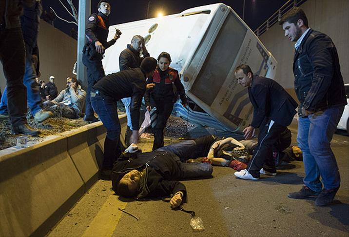 Etimesgut-Sıhhiye-Ulus seferini yapan otobüsteki 14 kişi yaralandı. Kazanın ardından olay yerine çok sayıda polis, sağlık ekibi ve itfaiye sevk edildi. Yaralılar, olay yerindeki ilk müdahalenin ardından ambulanslarla çevredeki hastanelere kaldırıldı.