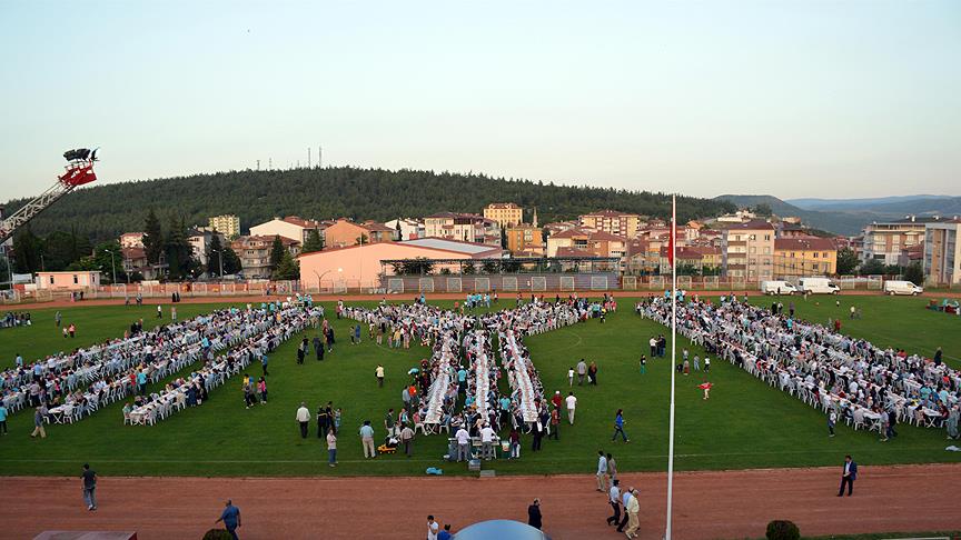 Ertuğrulgazi Mahallesi'ndeki Edebali Stadyumu'nda iftar programı düzenlendi. İftar için masalar "kayı boyu işareti" şeklinde hazırlandı.