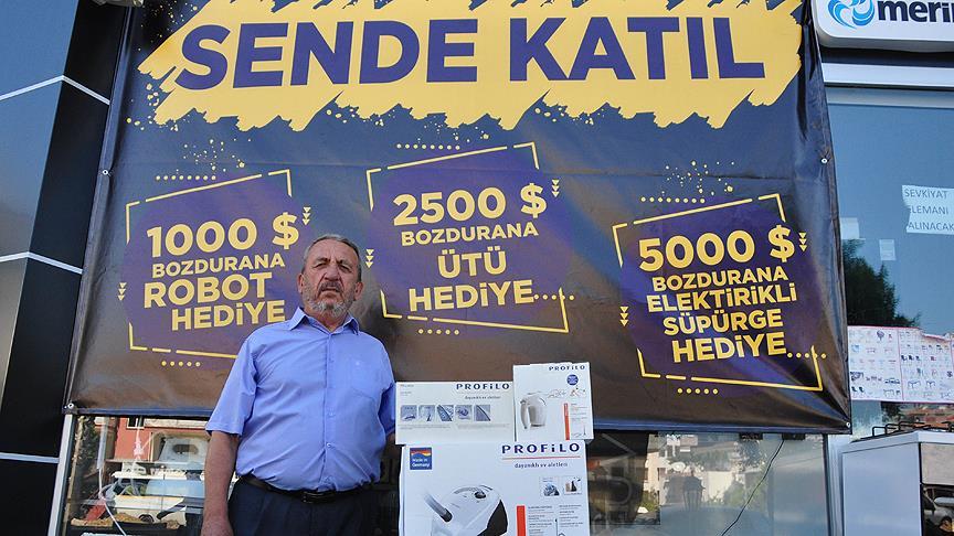Manavgat ilçesinde mobilya ve beyaz eşya mağazası bulunan Mustafa Gayretli, bin dolar bozdurana mutfak robotu, 2 bin 500 dolar bozdurana ütü ve 5 bin dolar bozdurana elektrikli süpürge hediye ediyor.