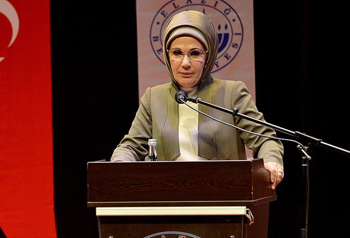 Konuşmanın ardından Fırat Üniversitesi Rektörü Prof. Dr. Kutbeddin Demirdağ, Emine Erdoğan'a onur belgesi ve tablo takdim etti.