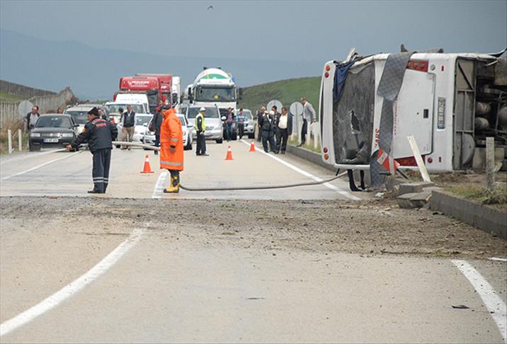 Erzurum'da yolcu otobüsünün devrilmesi sonucu ilk belirlemelere göre 15 kişi yaralandı.