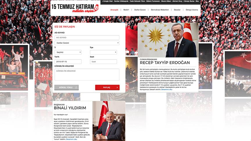 AK Parti'nin, Fetullahçı Terör Örgütü'nün (FETÖ) 15 Temmuz'daki darbe girişimine karşı vatandaşların anılarını yüklemeleri için oluşturduğu "www.15temmuzhatiram.com" adresine Türkiye'nin her ilçesinden bir anı eklendi.