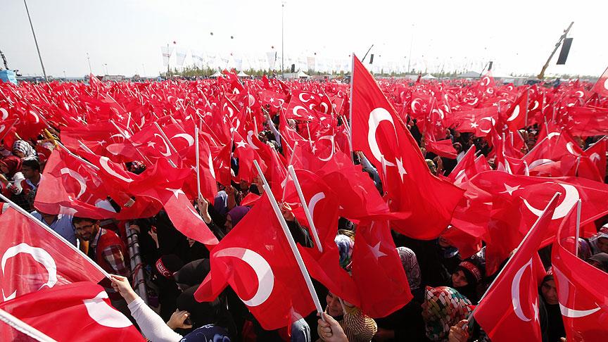 Cumhurbaşkanı Recep Tayyip Erdoğan, TBMM Başkanı İsmet Yılmaz ve Başbakan Ahmet Davutoğlu'nun katılımıyla Yenikapı'daki "Milyonlarca Nefes, Teröre Karşı Tek Ses" mitingi başladı.