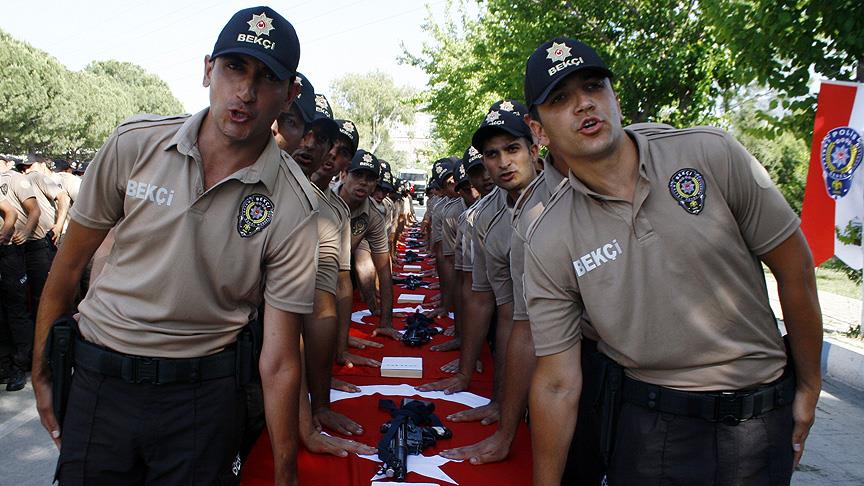 İçişleri Bakanlığınca il genelindeki emniyet müdürlükleri bünyesinde çalıştırılmak üzere alınan 318 mahalle ve çarşı bekçisi, bir aylık eğitimlerinin ardından İzmir Çevik Kuvvet Şube Müdürlüğünde düzenlenen törende yemin etti.