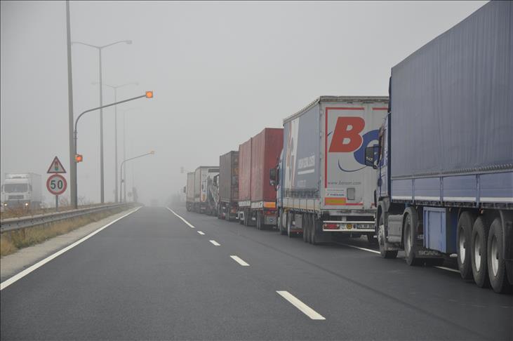 Avrupa ülkelerine teslim edilecek malzemelerin bulunduğu yaklaşık 300 tır, Kapıkule Sınır Kapısı önünde bekliyor.