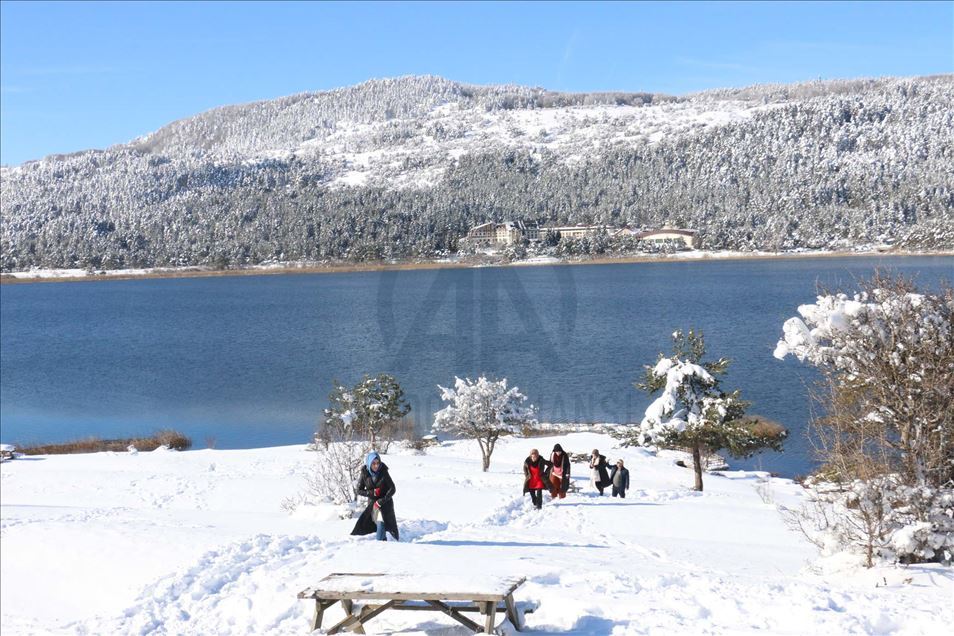 Öte yandan yeni yılın ilk hafta sonunda Abant Tabiat Parkı'na gelen tatilciler ise vakitlerini kar kalınlığının 50 santimetreyi bulduğu göl çevresinde yürüyüş yaparak geçirdi.
