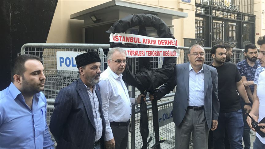İstanbul Kırım Tatar Türkleri Derneği üyeleri, Rusya'nın Kırım Tatarları'na yönelik politikalarını protesto etmek için Taksim Tepebaşı'nda bir araya geldi.