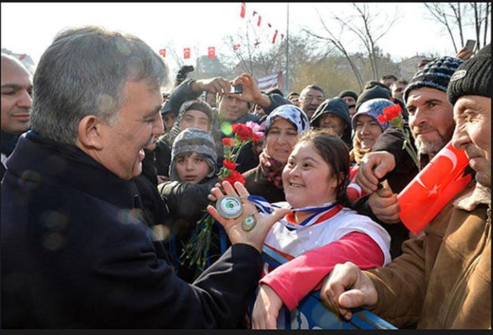 ''Vilayet önünde beni karşılayan kalabalık arasından geçen sene Uluslararası Down Sendromlular Atletizm Müsabakası'nda dünya 3'üncüsü olan kızımız boynundaki madalyaları bana gururla gösterdi'' mesajını yazan Gül, bu anın fotoğrafına da hesabında yer verdi.