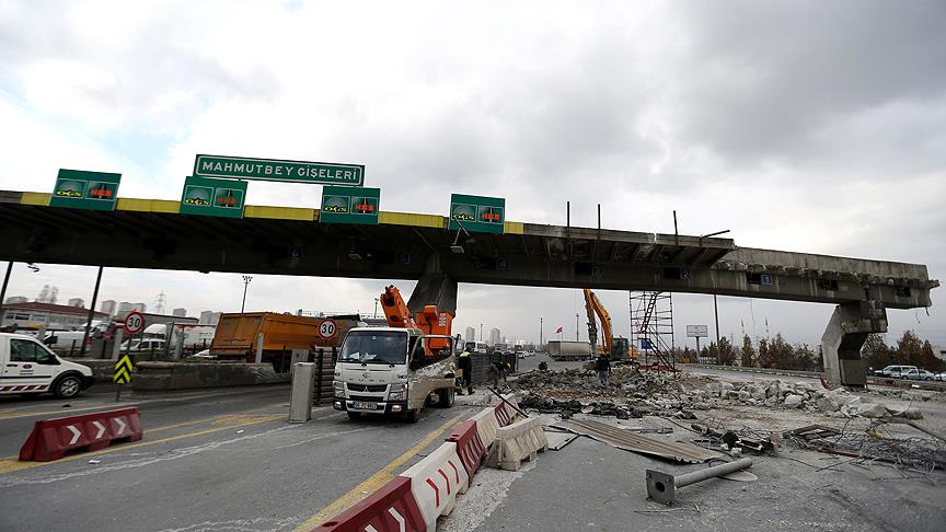İstanbul'da trafiğin yoğun olduğu noktalardan Mahmutbey'de serbest geçiş sisteminin uygulanmaya başlanmasının ardından gişelerin yıkım çalışmalarına başlandı.
