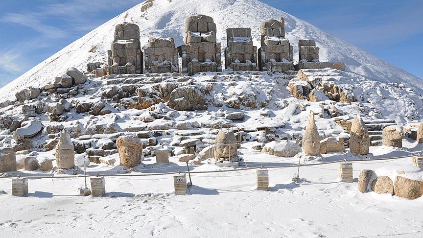 Kommagene Kralı Antiochus Theos tarafından M.Ö. 62 yılında yapılan ve "Dünyada güneşin doğuşunun ve batışının en güzel izlendiği yer" olarak bilinen Nemrut Dağı ören yerindeki heykelleri karlar içinde bulan turistler, fotoğraflar çekerek bu anı ölümsüzleştirdi.