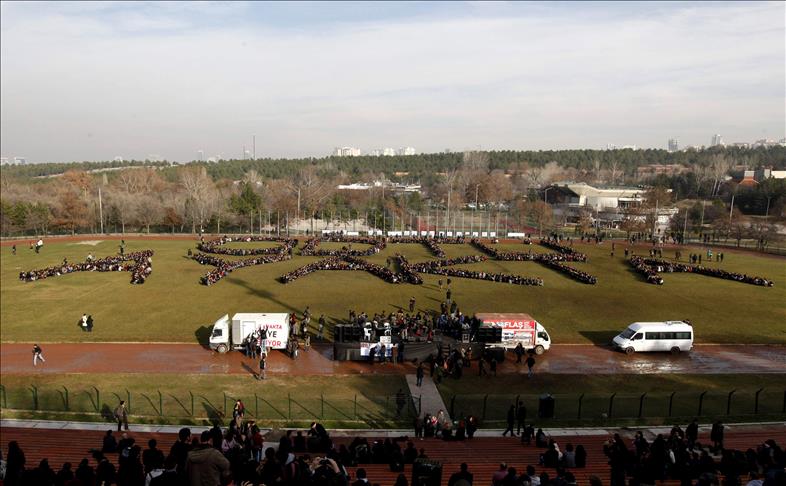 ODTÜ öğrencileri ve öğretim üyeleri yerleşkedeki Devrim Stadı'nda toplandı.
