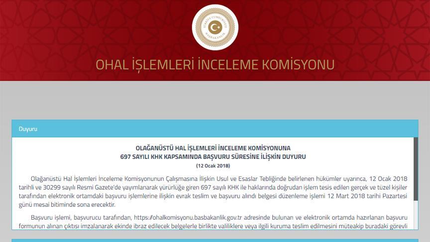 Komisyona, 695 sayılı KHK ile haklarında işlem tesis edilen kişiler için 24 Aralık 2017'de başlayan başvurular, 21 Şubat'ta tamamlanacak.