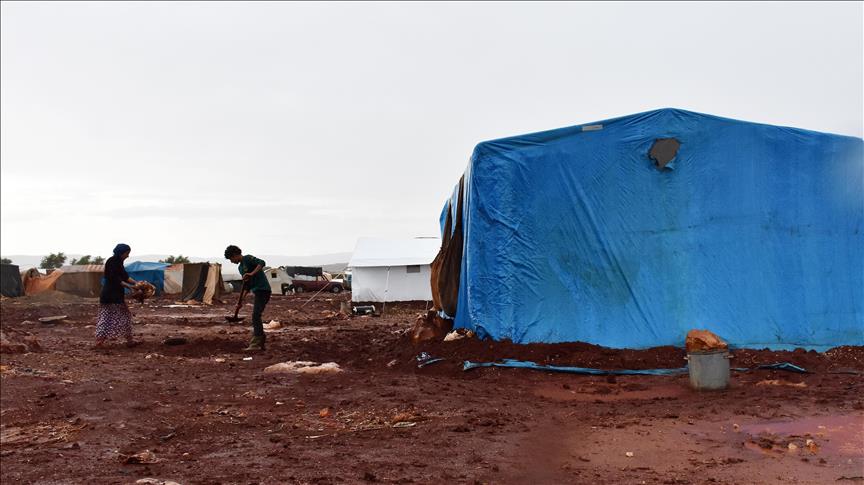 Başka bir kamp sakini Azzam Oleyvi de "Sabah namazı vakti kalkınca gördük ki çadırlar su alıyor. Yağmur uyuyan çocukların üzerine yağmaya başladı." ifadelerini kullandı.
