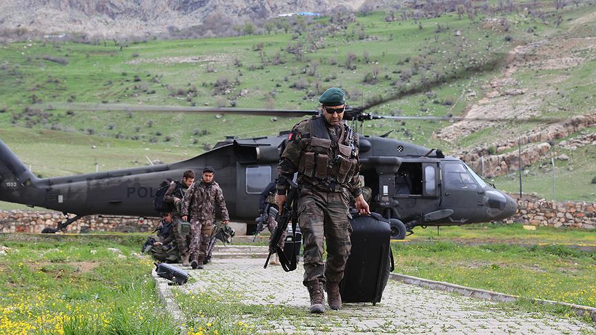 Siirt 3. Komando Tugay Komutanlığından, sorumluluk alanındaki Eruh, Pervari ve Şirvan ilçeleri için havalanan askeri helikopter, ilçe merkezlerinden seçim görevlileri ve içinde oy pusulaları bulunan torbaları aldı.