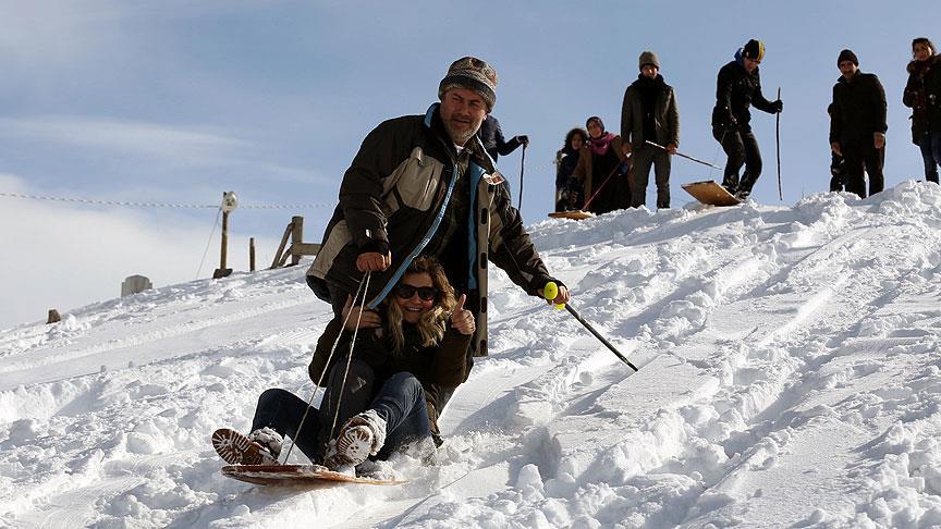 Yerli ve yabancı turistlerin mangal yakıp horon oynayarak karın tadını çıkardığı şenlikte, bazı vatandaşlar da naylon poşetlerle kaymaya çalıştı.
