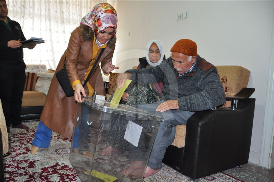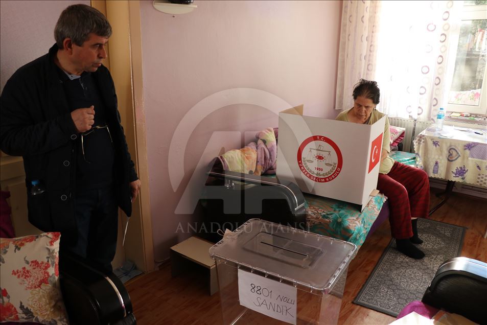 Önceden oy kullanmak için YSK'ye başvuruda bulunan 5 vatandaş, görevlilerce evlerine getirilen 8 bin 801 numaralı sandıkta oy kullandı.