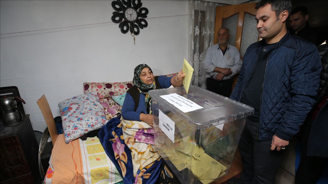 Ankara'da da astım nedeniyle solunum cihazına bağlı yaşamını sürdüren Arap Ergezen ile hastalıkları nedeniyle yatağa bağımlı Muzaffer Çoklu ve Deniz Arıkan, evlerine götürülen seyyar sandıkta oylarını kullandılar.