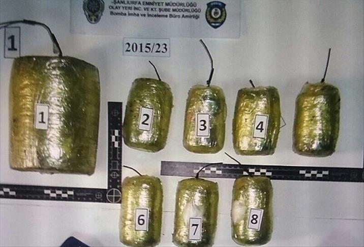 Şanlıurfa'nın Viranşehir ilçesinde, boş bir arazide 35 kilogram ağırlığında 8 el yapımı bomba ele geçirildi.