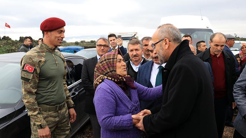 Şehit yakınları, Zeytin Dalı Harekatı'nda görevli askerlere kurban kesen ve bu görüntüleri sosyal medyaya da yansıyan "Yörük Teyze" lakaplı Döndü Deveci'yi Suriye sınırındaki çadırında ziyaret etti.