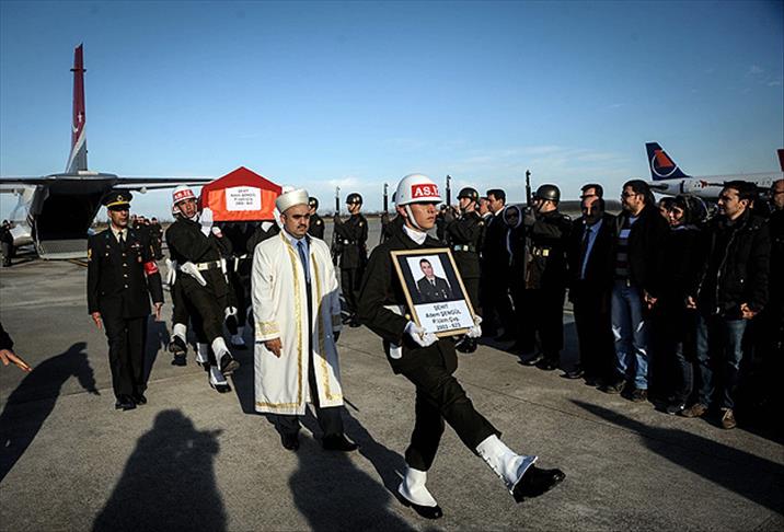 Türk Silahlı Kuvvetleri'ne ait uçakla Samsun Çarşamba Havalimanına getirilen şehidin naaşı, uçaktan askeri tören birliği tarafından alınarak cenaze aracına taşındı.