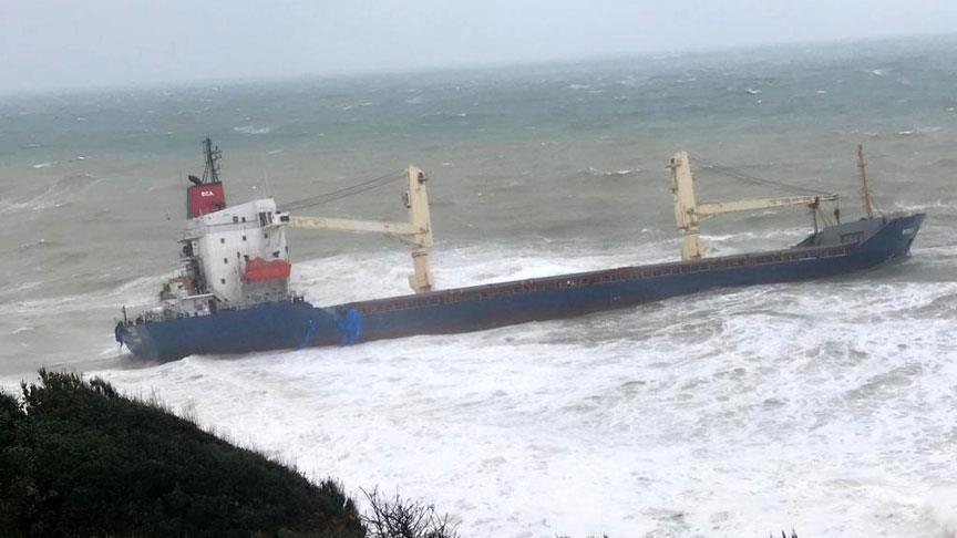 Şile'de şiddetli fırtına nedeniyle bir kargo gemisinin karaya oturduğu bildirildi.