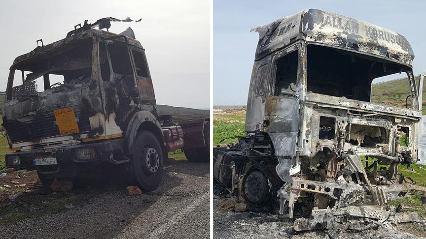 Teröristler, şoförleri indirdikten sonra benzin dökerek tırları ateşe verdi.