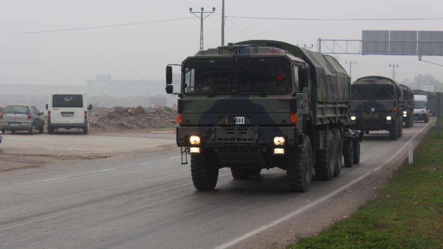 Güvenlik önlemleri altında götürülen, aralarında askeri malzeme taşıyan kamyon ve iş makinelerinin de yer aldığı araçların, Suriye sınırındaki birliklere takviye olarak gönderildiği öğrenildi.