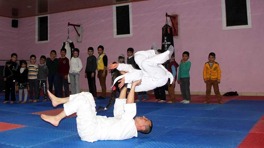 Hatay'ın Yayladağı ilçesinde yaşayan Suriyeli çocuklara judo eğitimi veriliyor.