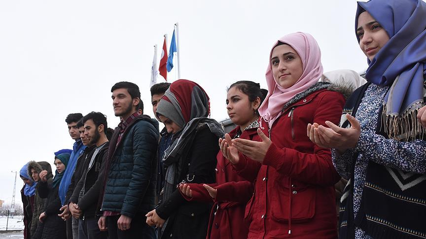 Suriye'deki iç savaştan kaçarak aileleri ile Batman'a yerleşen 420 sığınmacı öğrenci, son bir haftadır Halep'te yoğunlaşan rejim saldırıları altındaki kardeşleri için dua etti.