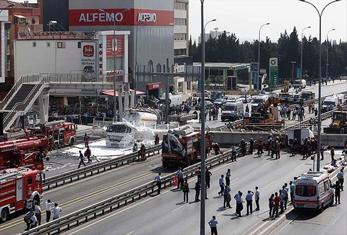 Avcılar İlçe Emniyet Müdürlüğü ekipleri, D-100 (E-5) karayolu Edirne istikametinde damperi açık şekilde trafikte seyrederken üst geçide çarpan 34 GF 8828 plakalı tankerin sürücüsü Ekrem C'yi gözaltına aldı.