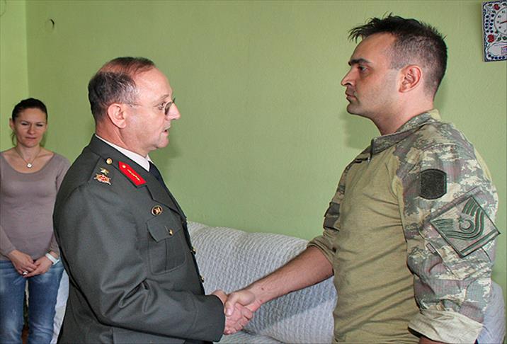 Şırnak'ın Beytüşşebap ilçesi kırsalında 29 Ekim'de mayına basarak sol bacağını kaybeden Komando Başçavuş Polat Katrancı'yı, Genelkurmay Başkanlığı adına Tuğgeneral Necdet Tuna ziyaret etti.