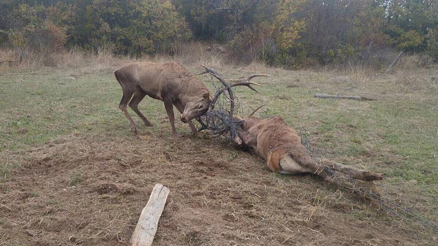Bu arada yetkililer, geyiklerin çiftleşme kavgası sırasında tel örgülere takılmış olabileceğini ifade etti.