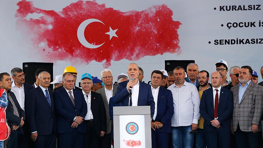 Türk-İş Genel Başkanı Ergün Atalay, Türk-İş tarafından 1 Mayıs Emek ve Dayanışma Günü dolayısıyla Anadolu Meydanı'nda düzenlenen kutlama programındaki konuşmasında, emeğin baş tacı edildiği, ekmeğin hakça bölüşüldüğü, savaşların, kanın ve gözyaşının olmadığı bir dünya için mücadele verdiklerini söyledi.