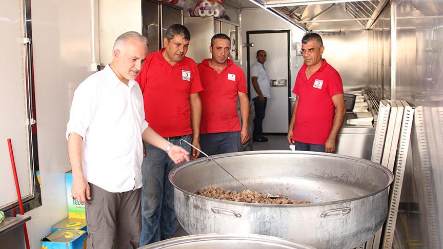 "Bizim buradaki önceliğimiz ve üstünde çalıştığımız alan, bu bölgedeki insani yardım ve ihtiyaçların bu dönemlerde karşılanmasıydı ve bölgeye bir Kızılay ekibi kurduk. Mobil mutfaklarımız faaliyete geçti, günlük 5 bin kişilik sıcak yemek kapasitesiyle çalışıyoruz. Burada AFAD ve Sağlık Bakanlığımızın ekibi var, onların koordinasyonuyla bölgeye destek vermeye gayret ediyoruz. İçerideki Cerablus halkına ve DAEŞ nedeniyle evlerini terk eden ve oraya tekrar dönecek olan civardaki insanlara yönelik de şu an gıda paketlerimiz, giysi paketlerimiz ve Kurban Bayramına yönelik destek paketlerimiz hazır. Şu an Karkamış Sınır Kapısının Cerablus'a doğru giden yolundaki mayınların ve EYP'lerin temizlenmesini bekliyoruz, daha sonra araçlarımızla bu yardımlarımızı Cerablus'a ulaştıracağız."