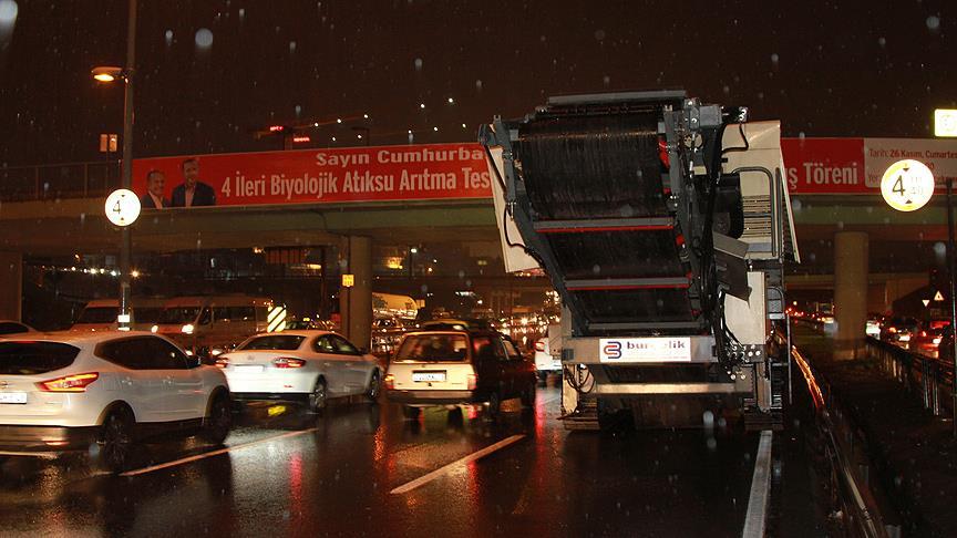 Üst geçide takılan tır trafiği aksattı