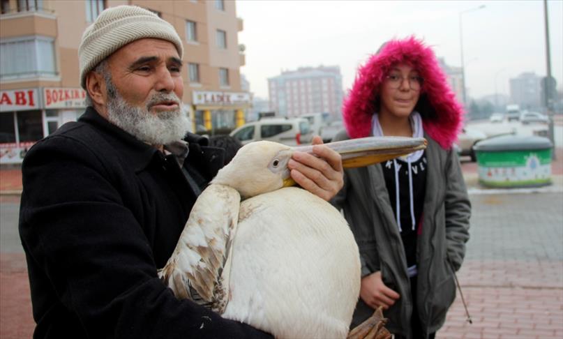 Konya'da yaralı halde bulduğu pelikanı evinde bir gece balıkla besleyen hayvansever, pelikanı daha sonra Doğa Koruma ve Milli Parklar Genel Müdürlüğü ekiplerine teslim etti.