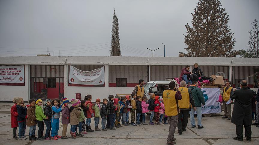 Türk dilini ve kültürünü dünyaya tanıtmak amacıyla çalışmalar yürüten Yunus Emre Enstitüsü (YEE), Cerablus'ta 10 bin öğrenciye, içerisinde kırtasiye malzemesi bulunan okul çantası dağıttı.