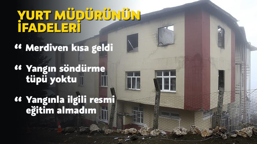 "Ben yurdun yangın merdiveni kapılarını birkaç kez denedim. Merdivenden aşağı inip çıktım. Kapılarda herhangi bir bozukluk yoktu. Yangın merdiveni kapıları açıktı. İkinci kattaki yangın merdiveni kapısının kapı kolları ben kontrol ettiğimde vardı. Olmadığını kabul etmiyorum. Ben yurdun yangın merdiveni kapılarının normalde yanmaz ve belli bir süre dayanması gereken maddeden olması gerektiğini bilmiyordum. Ben yangınla ilgili herhangi bir resmi eğitim almadım. Bu yangın tüplerini dolduranlar, bana nasıl kullanacağımı göstermişlerdi."