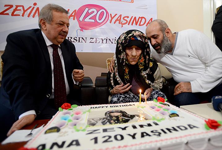Türkiye'nin en yaşlı kadını olan "Zeyini Ana", 120. yaşını doğum günü pastası keserek kutladı.