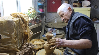 Tüm ailesinin çömlekçilik işi ile uğraştığını belirten 60 yaşındaki Saim Öztürk, 40 yıldır toprağı sanata dönüştürdüğünü dile getirerek, "Dede mesleği, babadan oğula geçiyor.. Benden de oğluma geçti. Ben de onu yetiştiriyorum. Ellerimiz çamur içinde hayatımızı sürdürüyoruz. Bir aile olarak bu işi devam ettiriyoruz." dedi.
