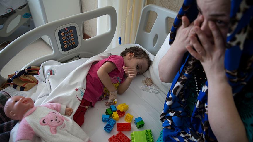 O hastalardan biri, 23 yaşındaki Nurten Celil, DAEŞ'in kimyasal bombasına iki yaşındaki bebeği Maria ile yakalandı. Genç anne, omurilikte ve beyinde fıtıklaşma olarak da bilinen, ileri derecede beyin ve sinir hastalığı olan küçük kızının sağlık durumunun kimyasal gaza maruz kaldıktan sonra daha da kötüleştiğini göz yaşları içinde anlattı.