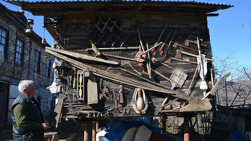 Ordu'da çocukluğunda başladığı eski ve kullanılmayan eşyaları toplama hobisini 55 yıl boyunca sürdüren Hüseyin Özyurt, koleksiyonunu evinin bahçesindeki serenderde sergiliyor.