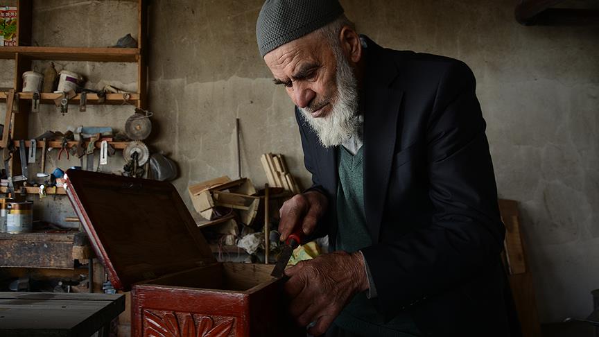 Erzurum'un Pasinler ilçesinde, çocuk yaşta başladığı ahşap sandık yapma zanaatini 64 yıldır sürdüren Mehmet Karagöz, ilerlemiş yaşı ve sağlık sorunlarına rağmen mesleğini büyük bir şevkle yapıyor.
