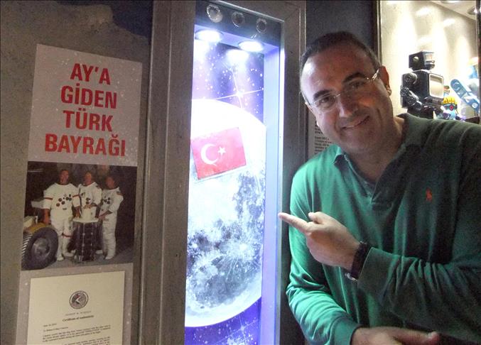 ''1971 yılında Apollo 15/Endeavour aya gidiyor, en uzun süre ayda kalan araç oluyor ve geri dönüyor. NASA, bütün bu uzay keşiflerini insanlık adına belirtmek, somut bir şekilde vurgulamak için ülkelerin bayraklarını da bir katalogla uzaya götürüyor. Apollo 15/Endeavour'da uçuşunda bayrakları götürdü ve dünyaya geri getirdi. Onlardan biri de bizim bayrağımız. Bu bayrak 3 astronottan biri olan Alfred Merrill Worden tarafından götürülmüş ve sertifikası imzalanmış. Bayrak, zamanla uzay koleksiyonerlerinin elinde ABD'de kalmış ve yakın tarihte açık artırmaya çıkmış. ABD'de yaşayan iş adamı Ekmel Anda, açık artırmayı duyunca etkileniyor ve satın alıp müzeye hediye etti.''
