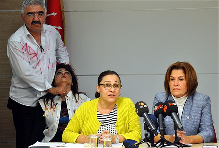 CHP Kadın Kolları Merkez Yönetim Kurulu (MYK) Üyesi Macide Arıkan'ın "Kadınlara Yönelik Şiddete Karşı Uluslararası Mücadele ve Dayanışma Günü" dolayısıyla düzenlediği basın toplantısı sırasında yaklaşık yarım saat boyunca bir erkeğin bir kadını bıçaklaması canlandırıldı.
