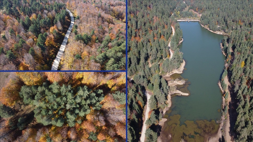 Bölgedeki sonbahar renkleri dronla havadan görüntülendi.