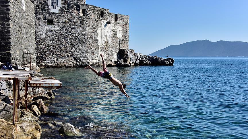 Binlerce yıllık tarihi bulunan Bodrum Kalesi önlerinde denize girmenin kendilerine büyük keyif verdiğini belirten Caner Avcı ise "Çok güzel bir havada denize giriyoruz. Kale önünde denize girmek bir ayrıcalık" dedi.